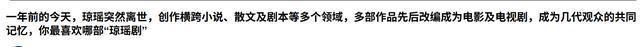 但她的作品还留存于世,只要看到那些作品,就仍然能够想到琼瑶。 可她的离世还带来了一个新的问题。